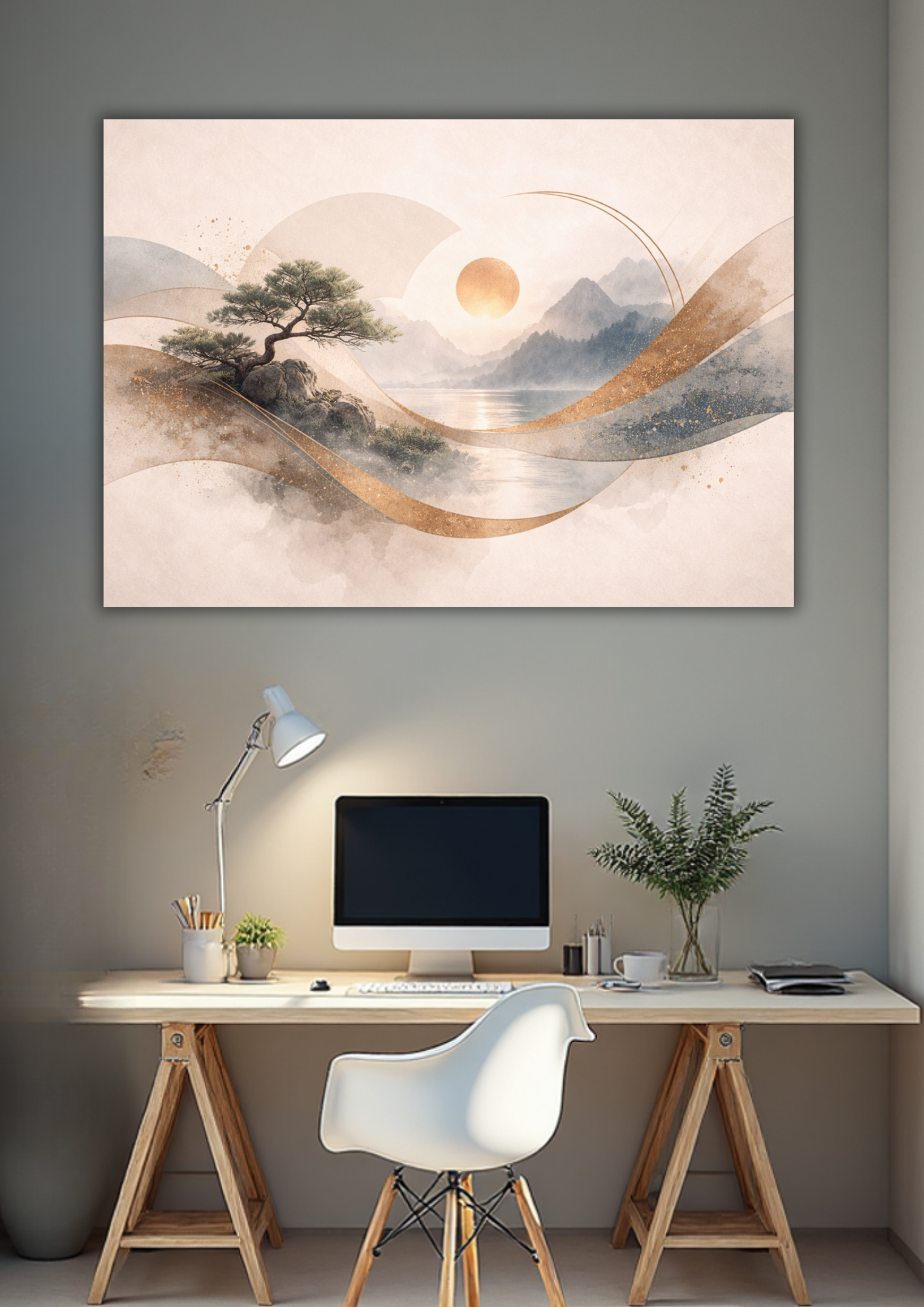 The soft beige, sand, and muted grey tones blend effortlessly into contemporary, Scandinavian, boho, and zen-inspired interiors. The fluid design adds movement while maintaining a peaceful aesthetic, making it ideal for living rooms, bedrooms, home offices, studios, and meditation spaces.