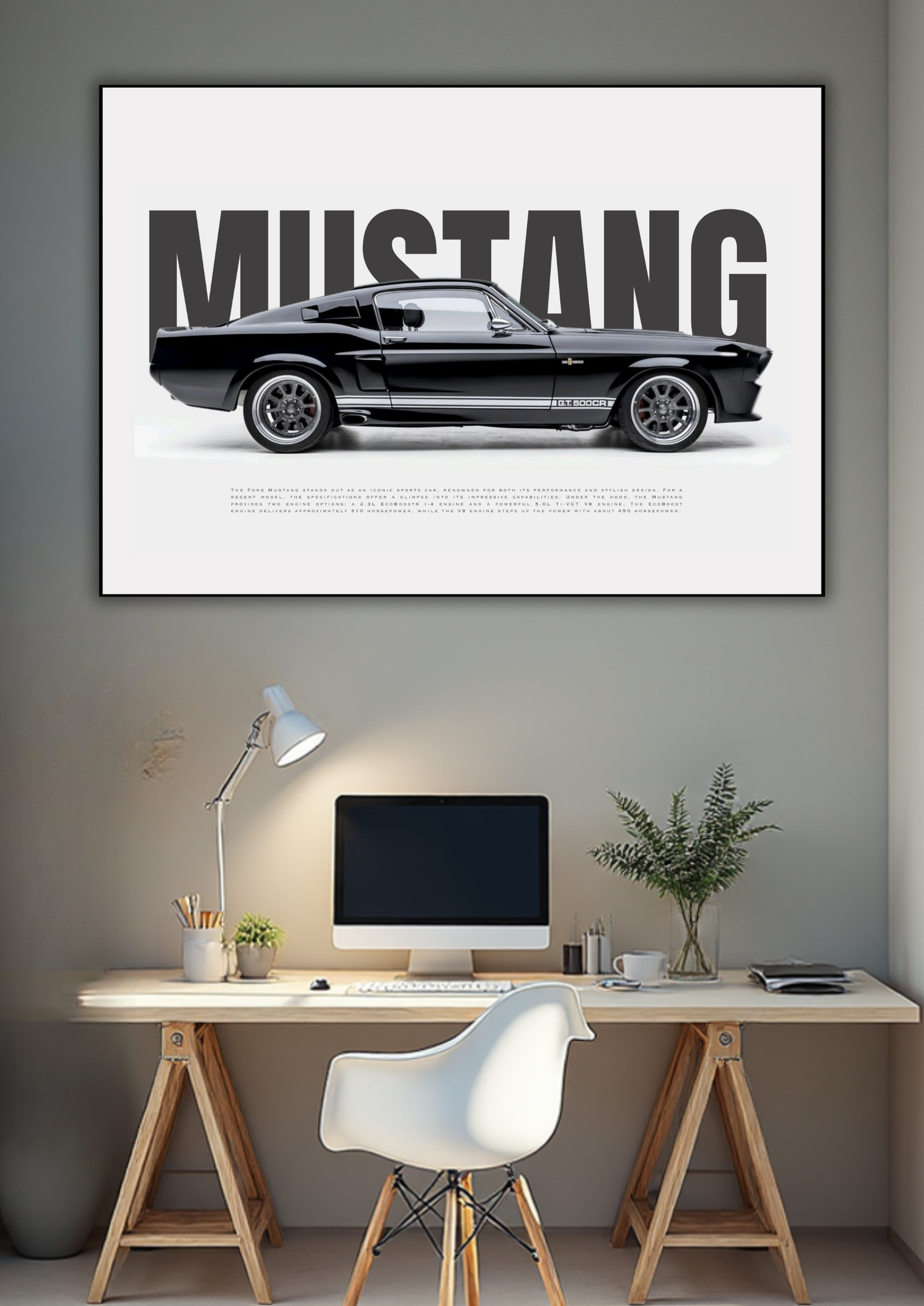 Showcase your love for American muscle with this Mustang Black Edition Poster featuring the iconic black Mustang with bold typography behind it. Ideal for car lovers, garage décor, gaming setups, and stylish room walls.